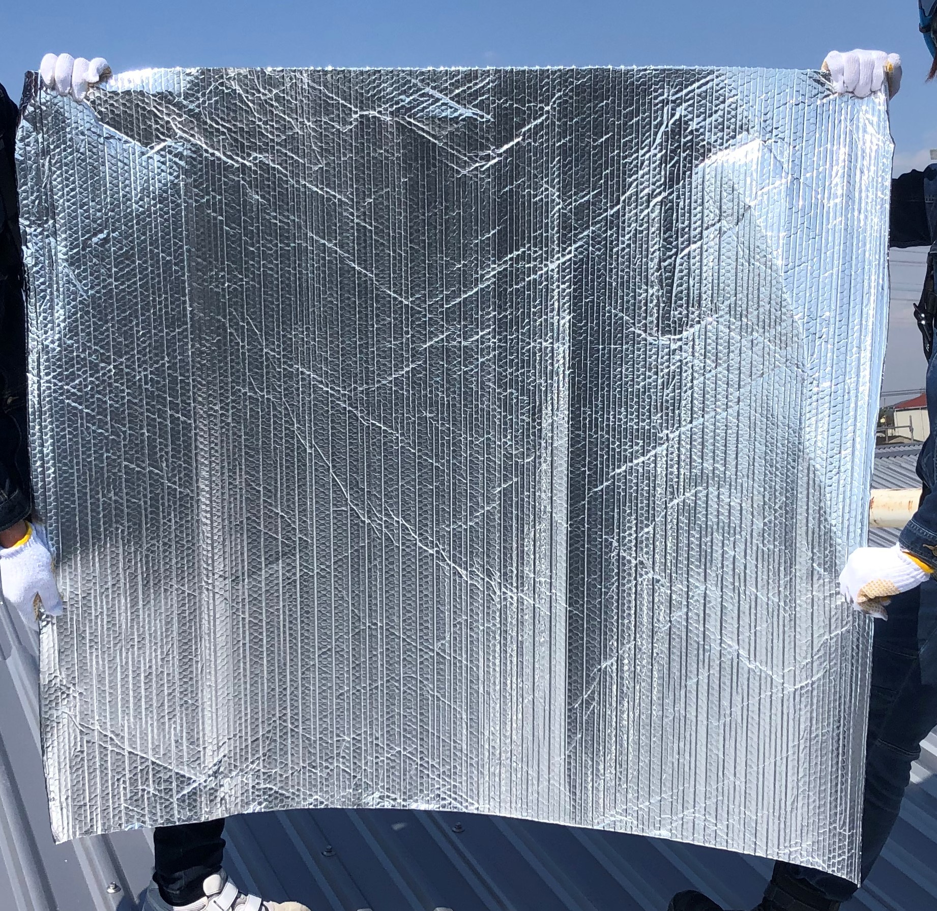 うちのオリジナル遮熱材のシャネリアを使っているわけではありませんが、同じようなアルミ材を使っています。
