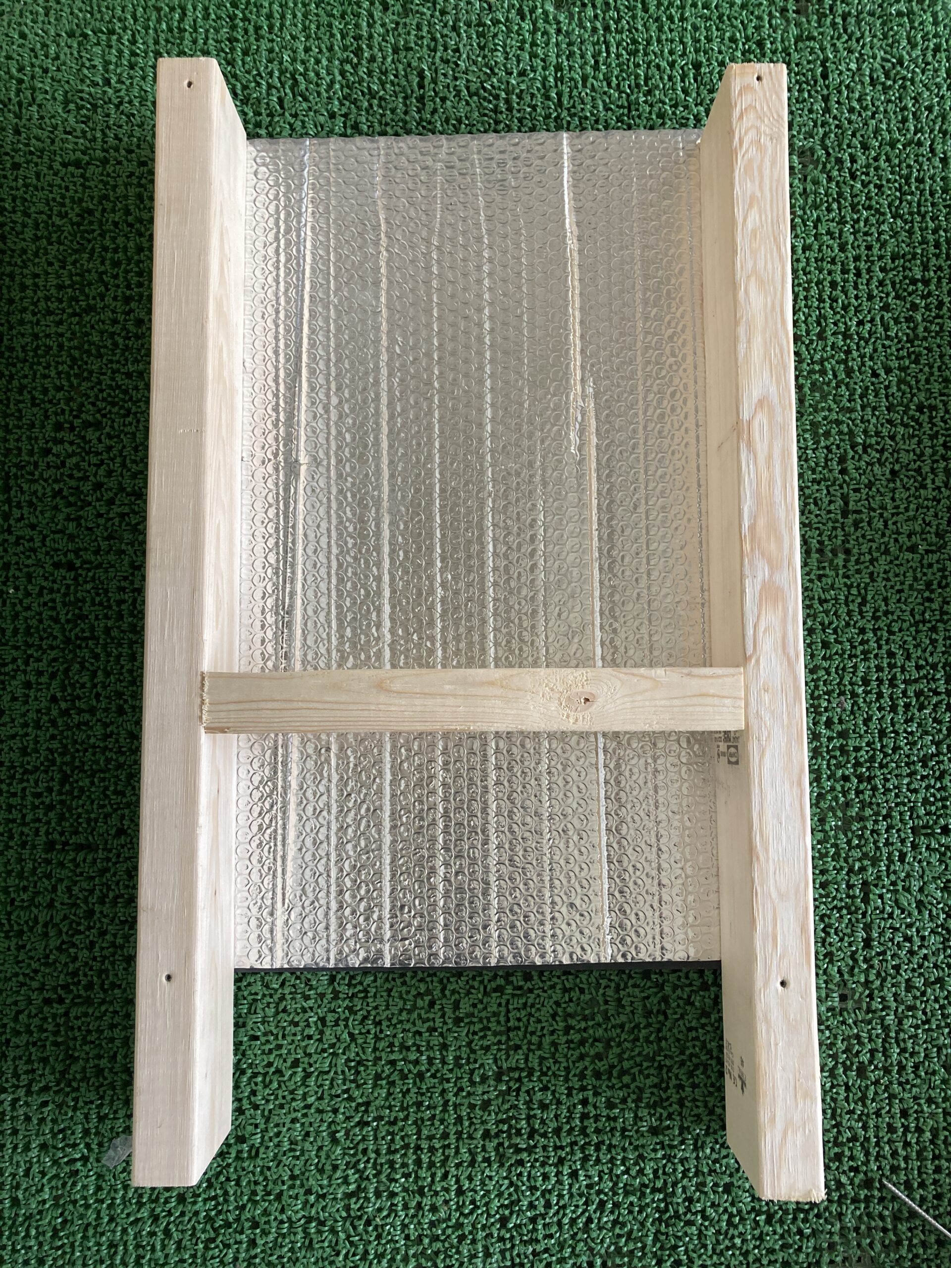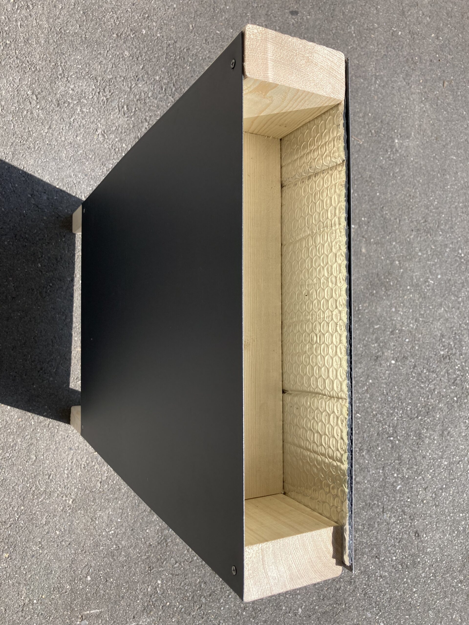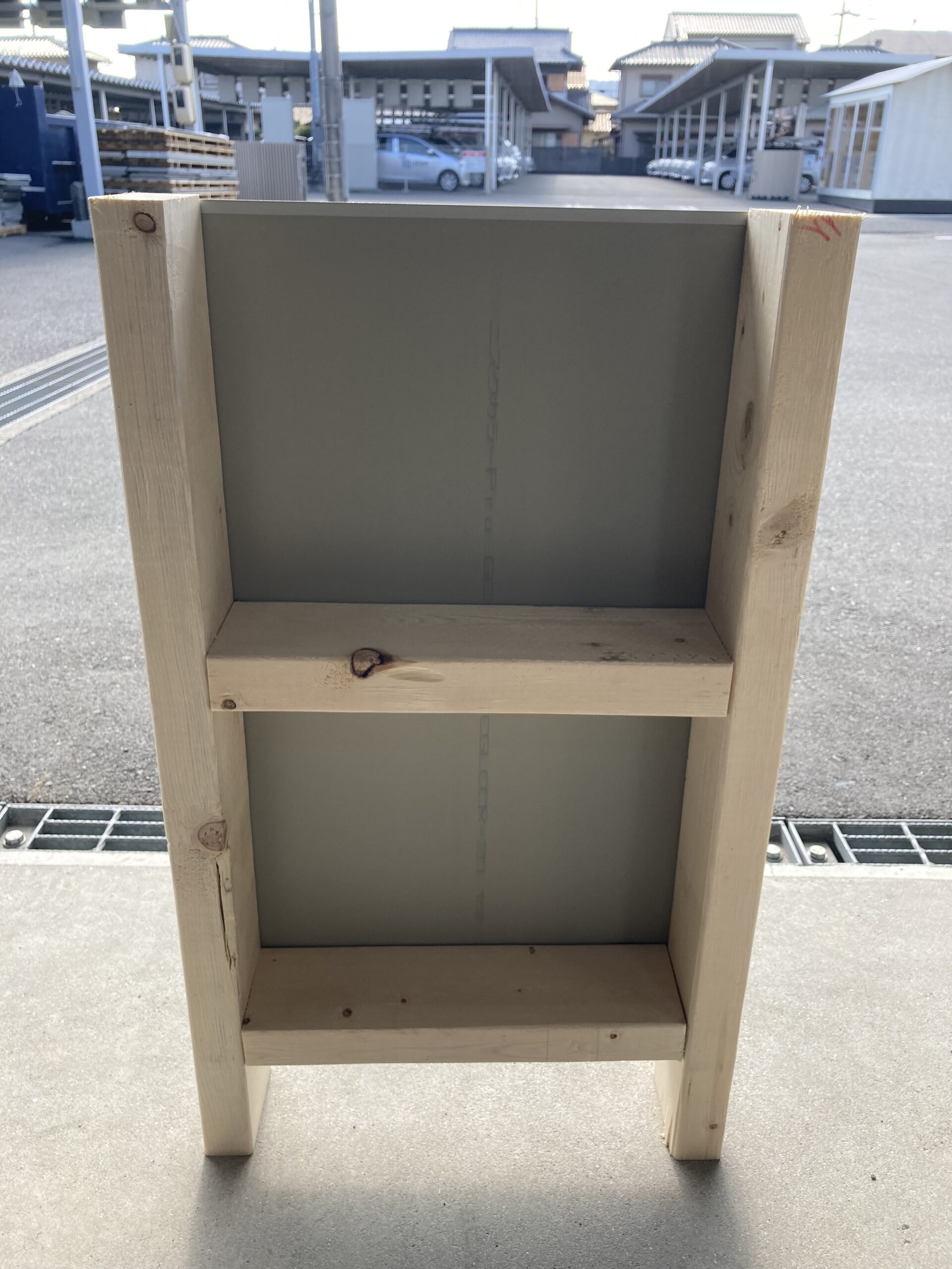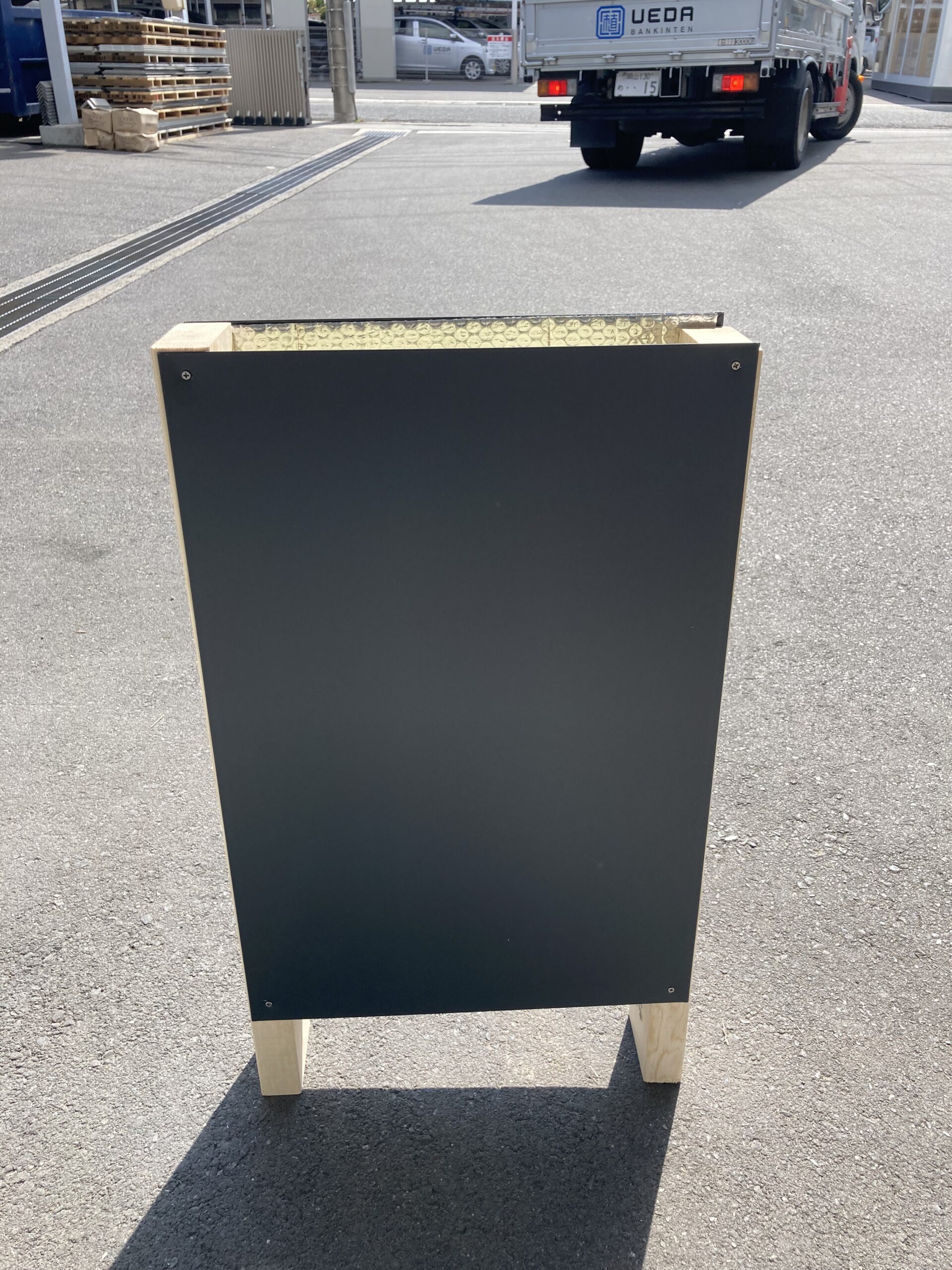 まず、2×4材でフレームを作りガルバリウムで両側を挟みます。