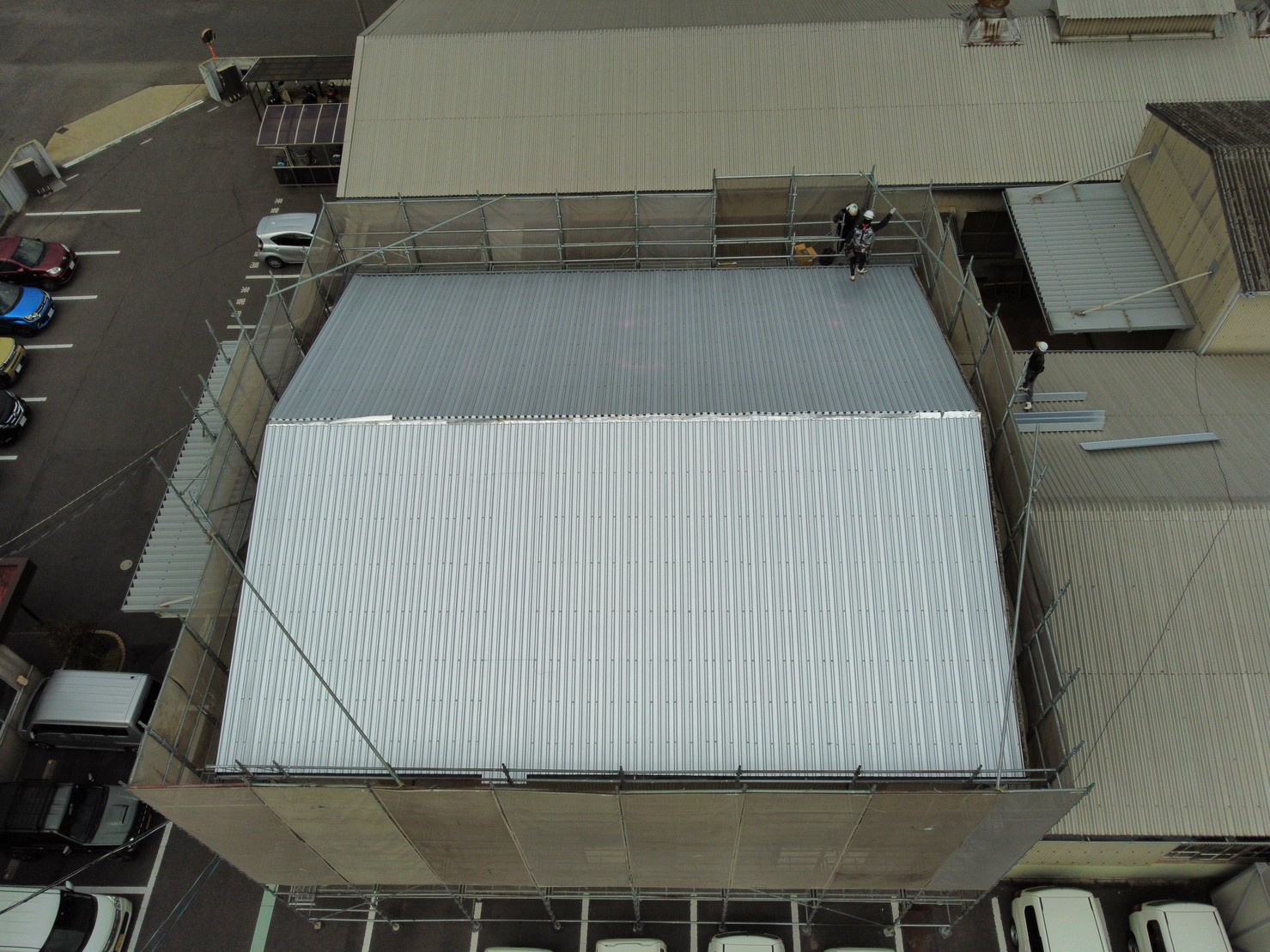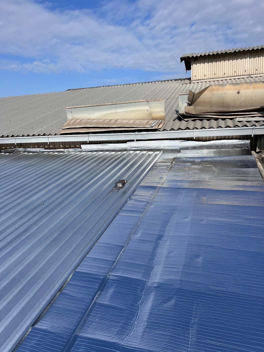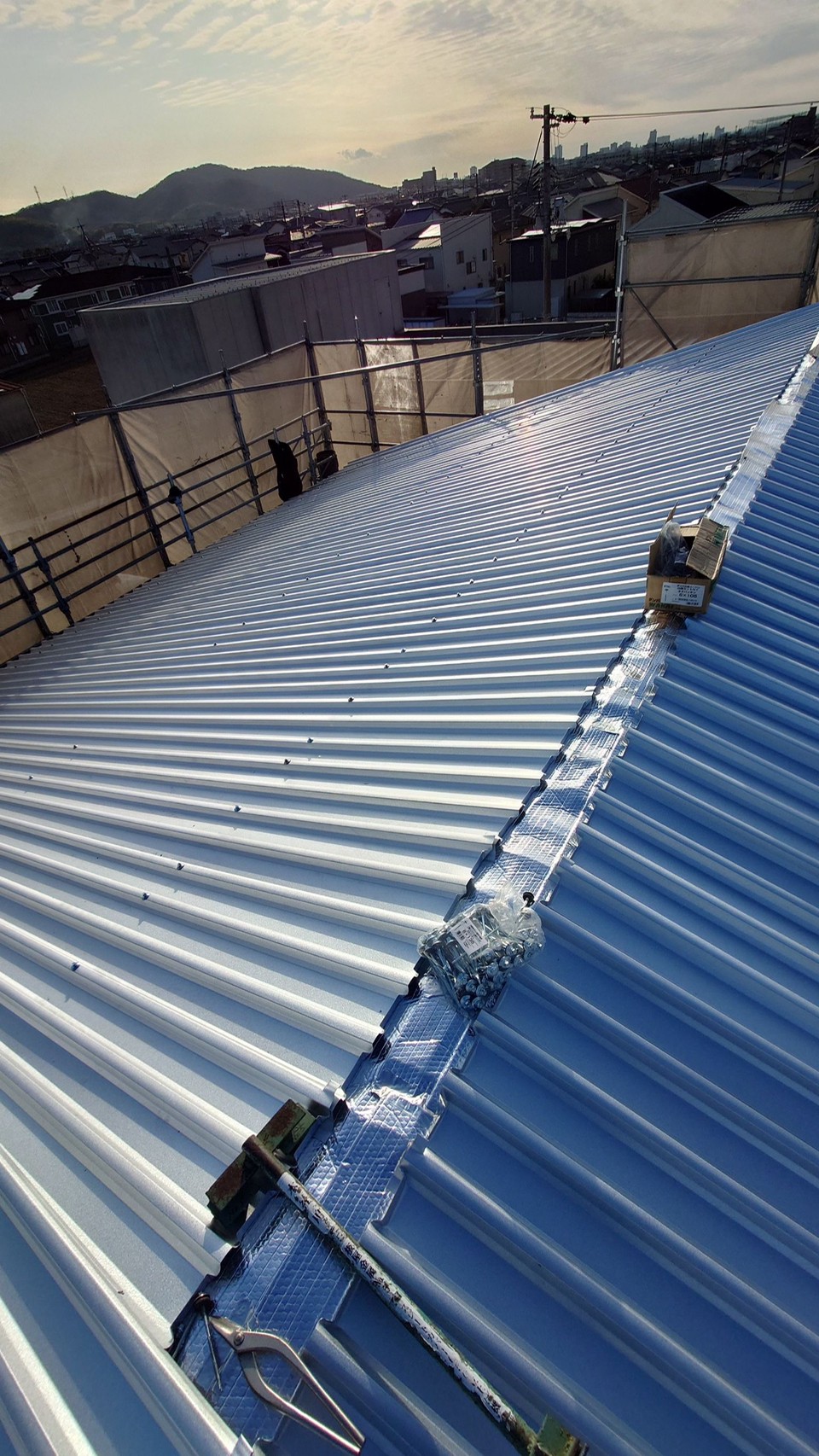 ガルバニウム屋根材の施工時写真です