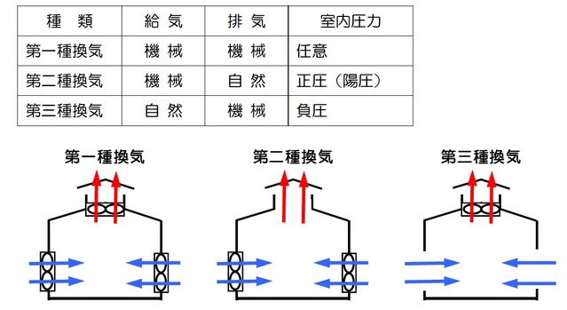 換気は第一種、第二種、第三種換気の3つに分類されます。