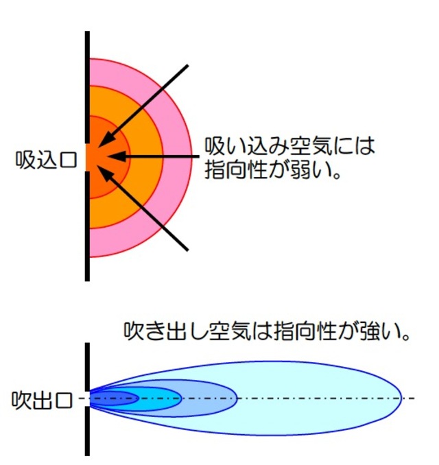 ファンの吸い込み空気は指向性が弱く、吸込口の近くでない限り気流をあまり感じません。
