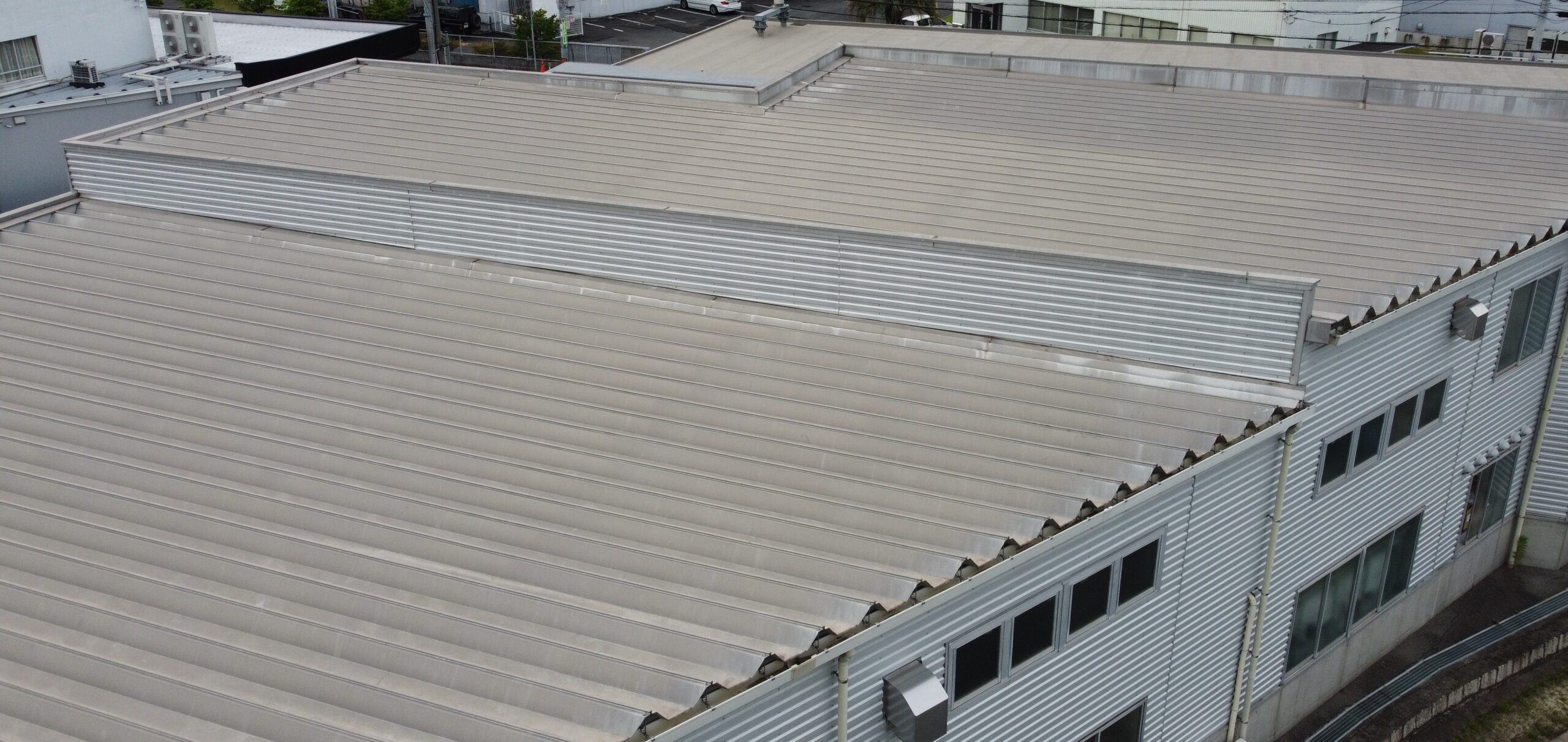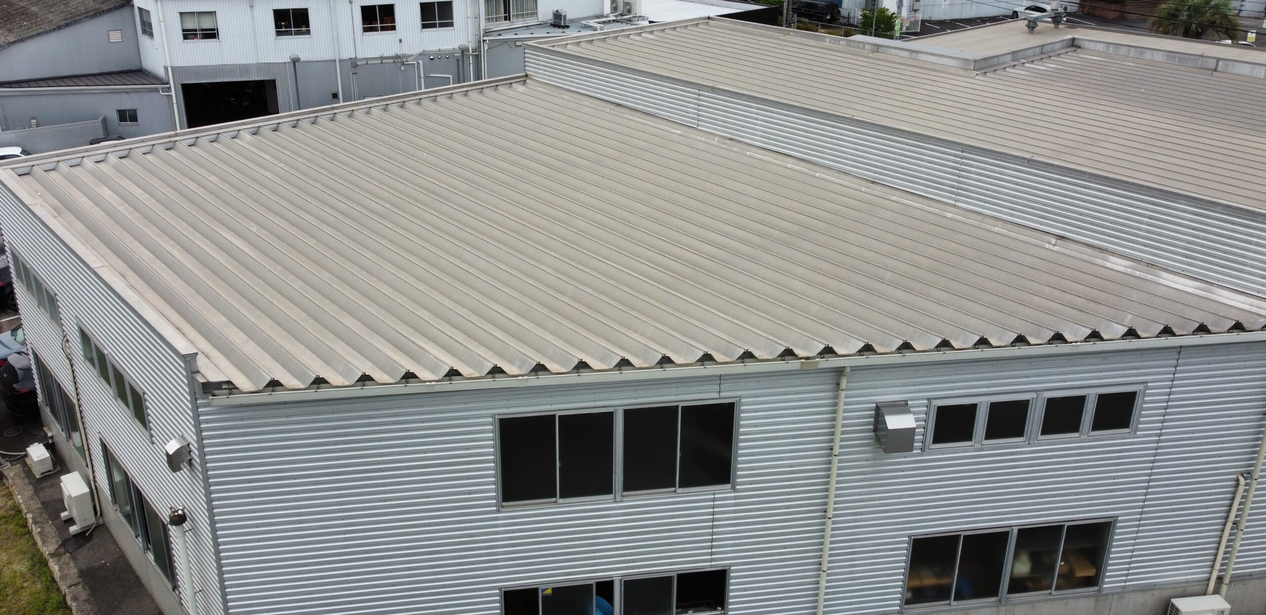 岡山市東区で工場の折版屋根を遮熱(ルーフシェード)工事しました。