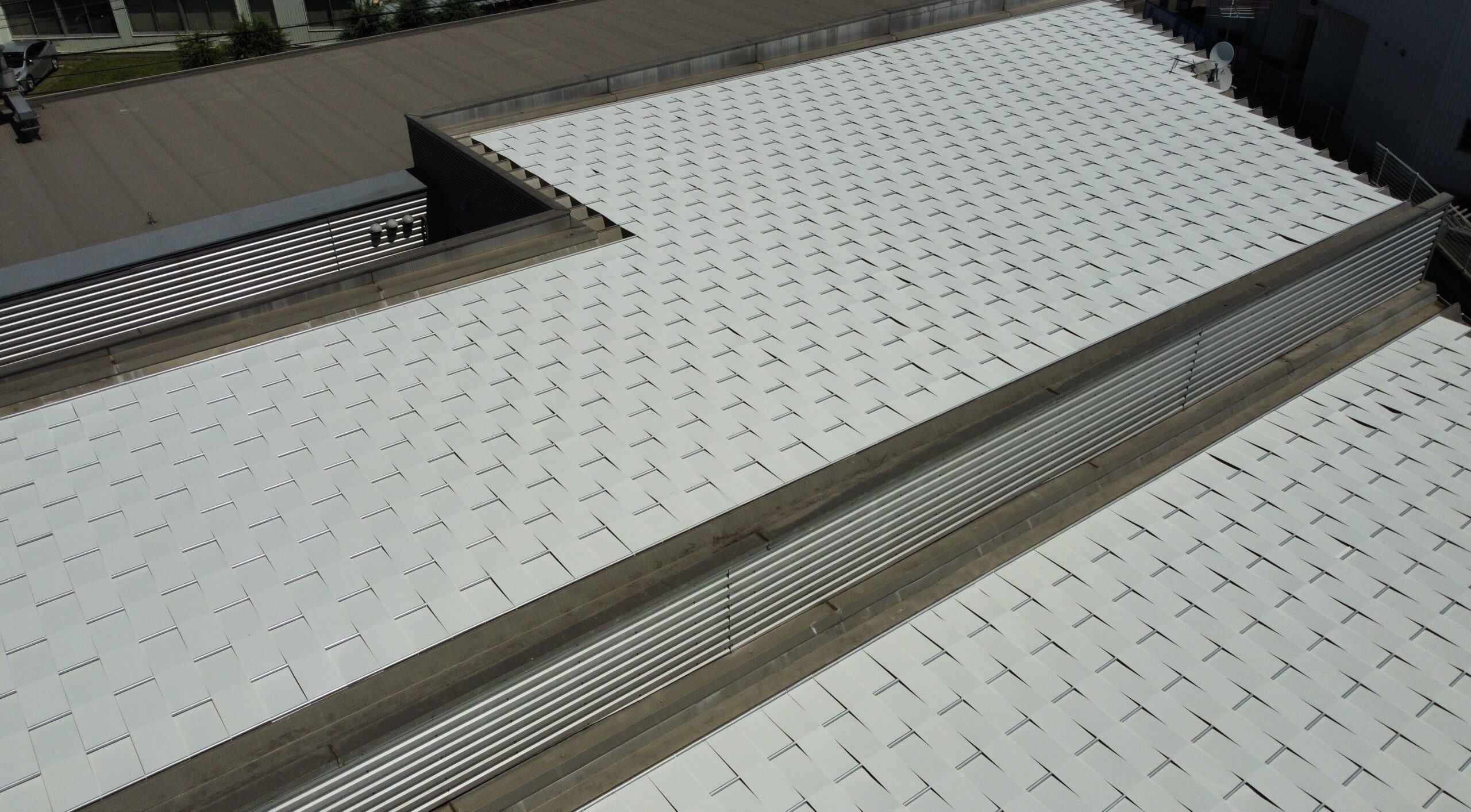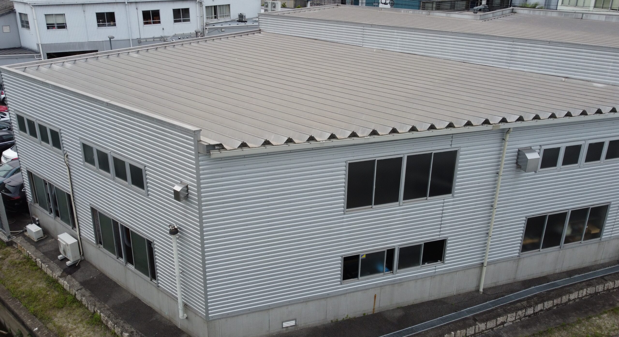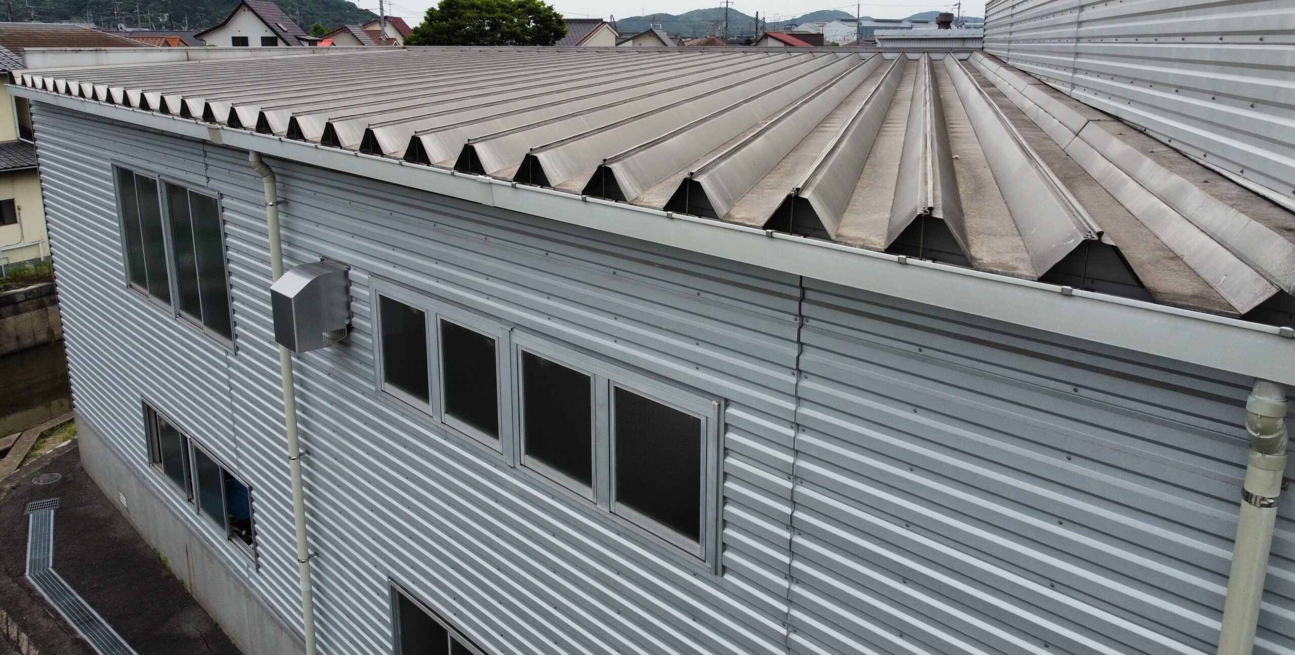 屋根形状は波型金属折版屋根。ハゼ式なのでルーフシェードが施工可能ですので工事の判断を下しました。